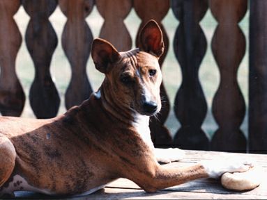 Comments: Males: Avongara Kweli (Br/W), Avongara Bahati Nasibu (Br/W), Avongara Bote, CDX (Br/W), Avongara Donner, CD (Br/W), Avongara Blixen of Clayridge (Br/W) and Avongara Rudi (R/W). Brindle pups went from a very dark brindle to moderate brindle. They have good shoulder layback but tended to be quite long in back. Tails could have been curlier. All these males have produced pups themselves except Blixen. |