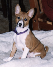 January 13, 1993 1 red/white female registered Breeders: Teresa and George Gavaletz HM447188 Am. Ch. Akuaba's Saturday Strut, CD (R/W) Am. Ch. Bushbabies Boffo Weederman (Bl/W) Princess Qina El-Arish (Bl/W) Sire: Am. Ch. Red Jhinn's Bushbaby, JC (R/W) Am. Ch. Sukari's Raider of the Lost Bark, CD (R/W) Kazor's Obeah Obulus (R/W) Ch. Kazor's Jungle Jane (R/W) |