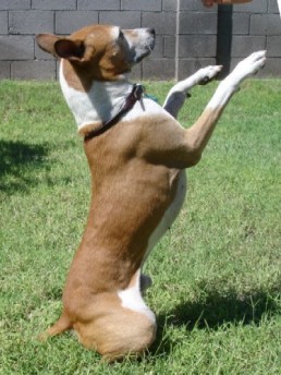 Comments: Square dog and better in the topline then most purely African progeny. He is a bit large, not super in the head but a very handsome dog. A particularly outgoing, confident dog. Z is strong moving and has well developed rear musculature. Could probably be a champion is he liked to show. Good bite with full dentition. His testicles were down at eight weeks old. SPECIAL NOTE: At age 11 he was Best Opposite Sex at the 2006 National Specialty African Stock Exhibition. Judge Susan Coe.