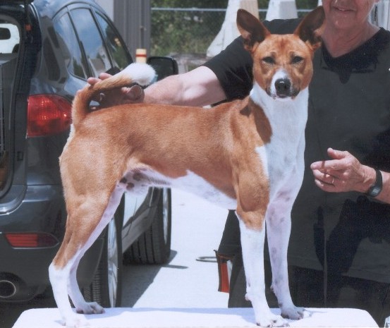 Comments: Avongara Zibili (Alfie) is a well-muscled very agile dog. he is sound coming and going and has excellent side gait. He has nice eye-color and shape and a good bite. His topline is solid, nut he could use a better tail set and curl. He has well-padded feet with short nails. |